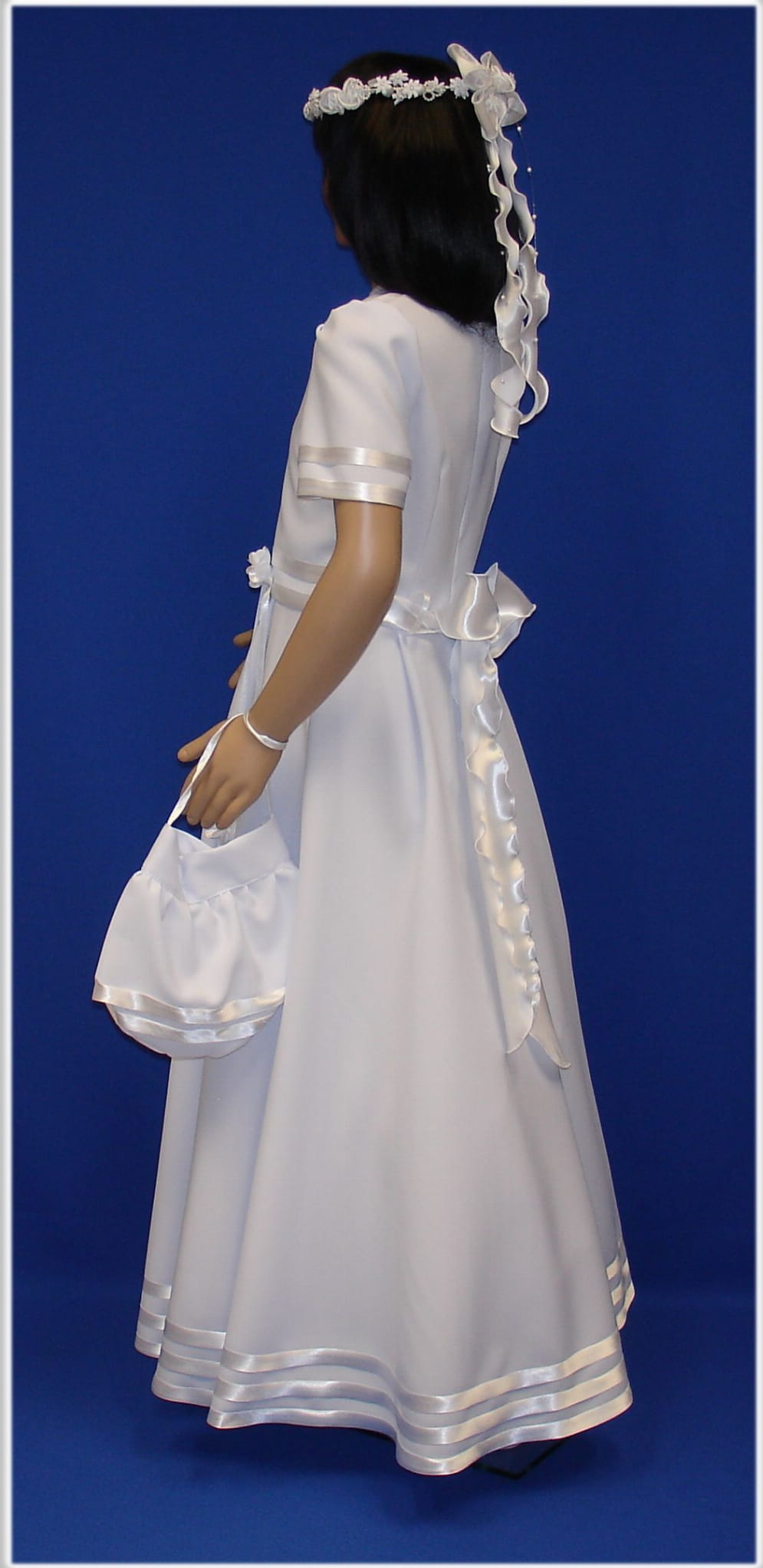 # sukienka komunijna ze śnieżno białej tkaniny komunijnej - ASKS/01