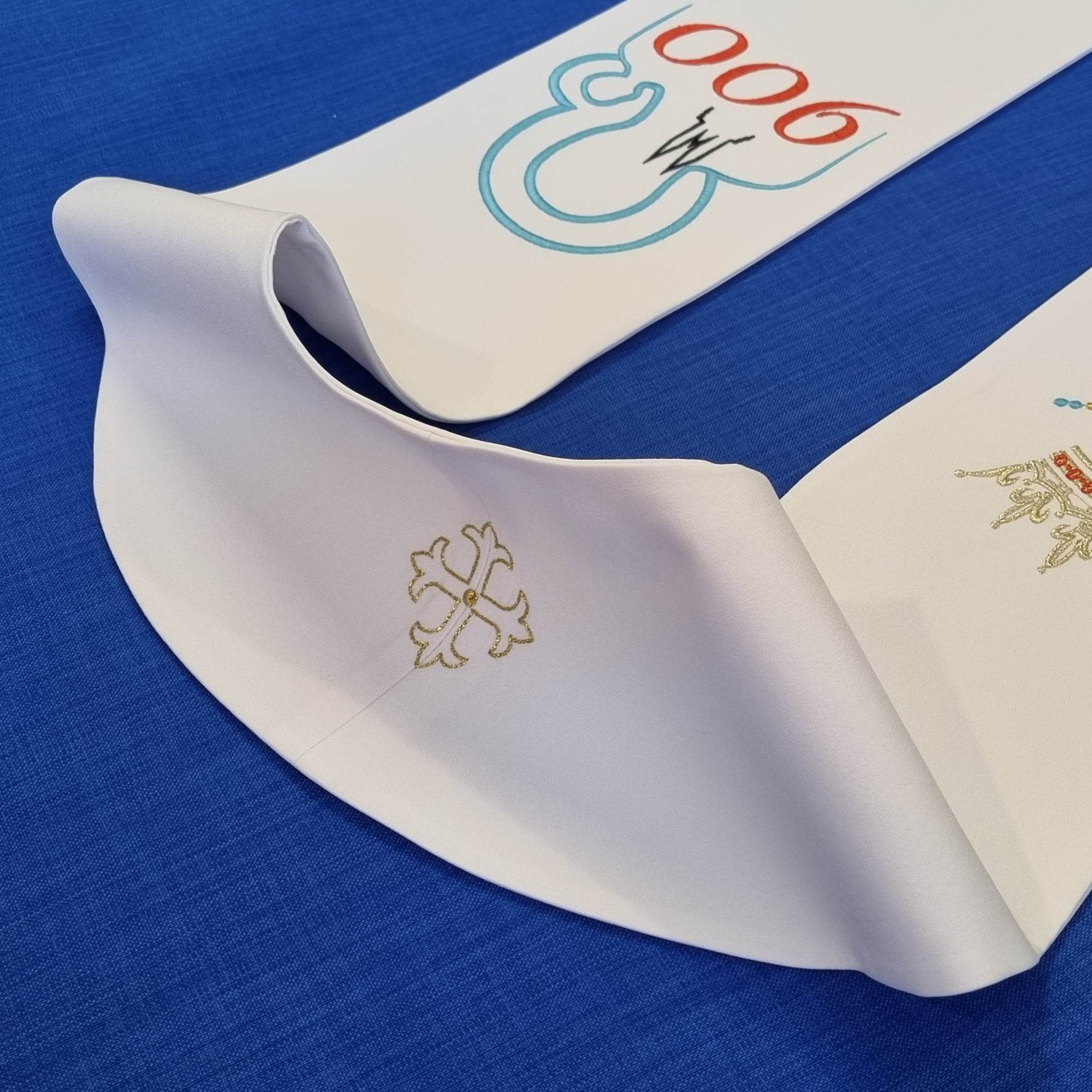 Stuła do koncelebry, biała, wykonana z tkani liturgiczne.