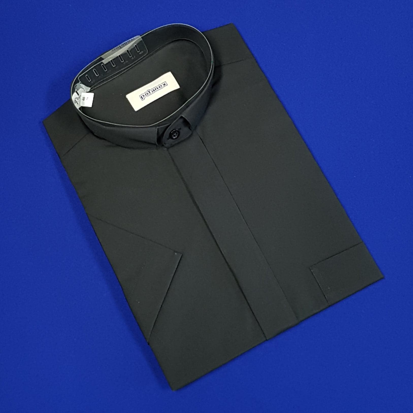 Koszula kapłańska czarna, z krótkim rękawem - polanex