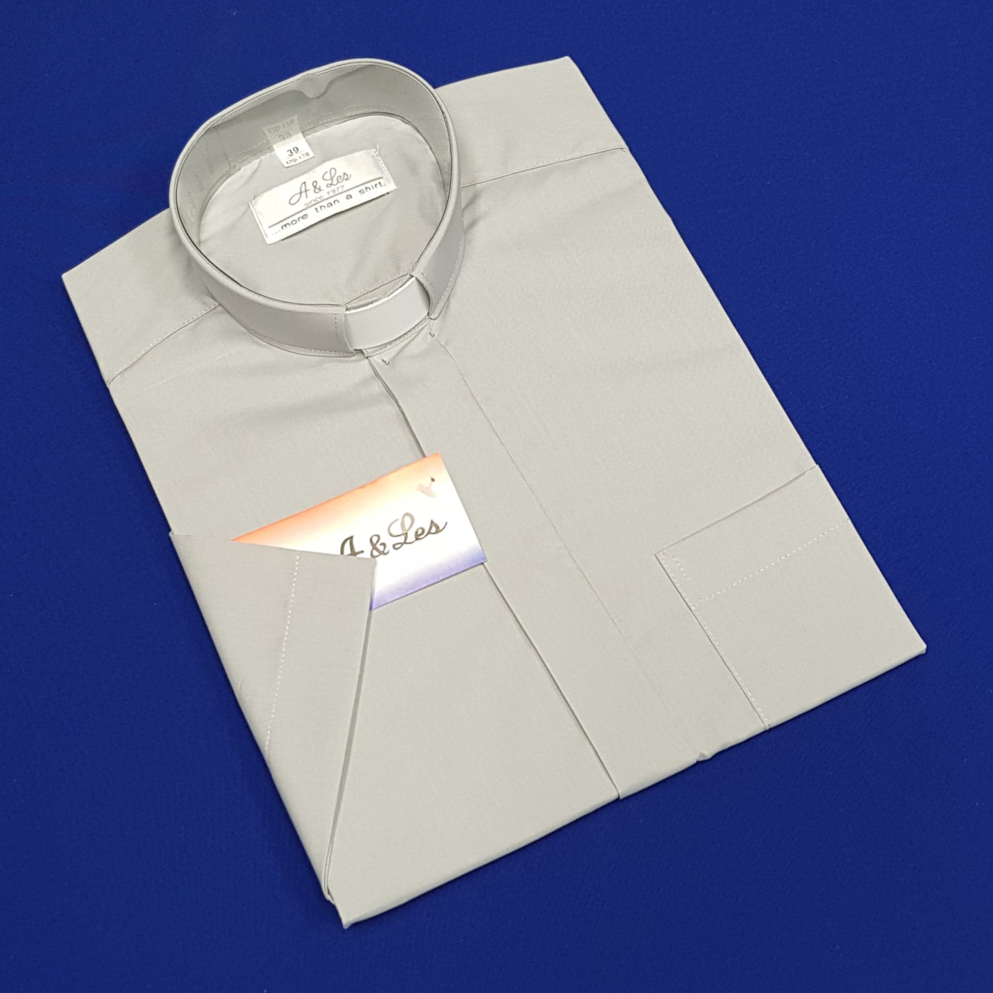 Koszula kapłańska popielata, z krótkim rękawem - A&Les