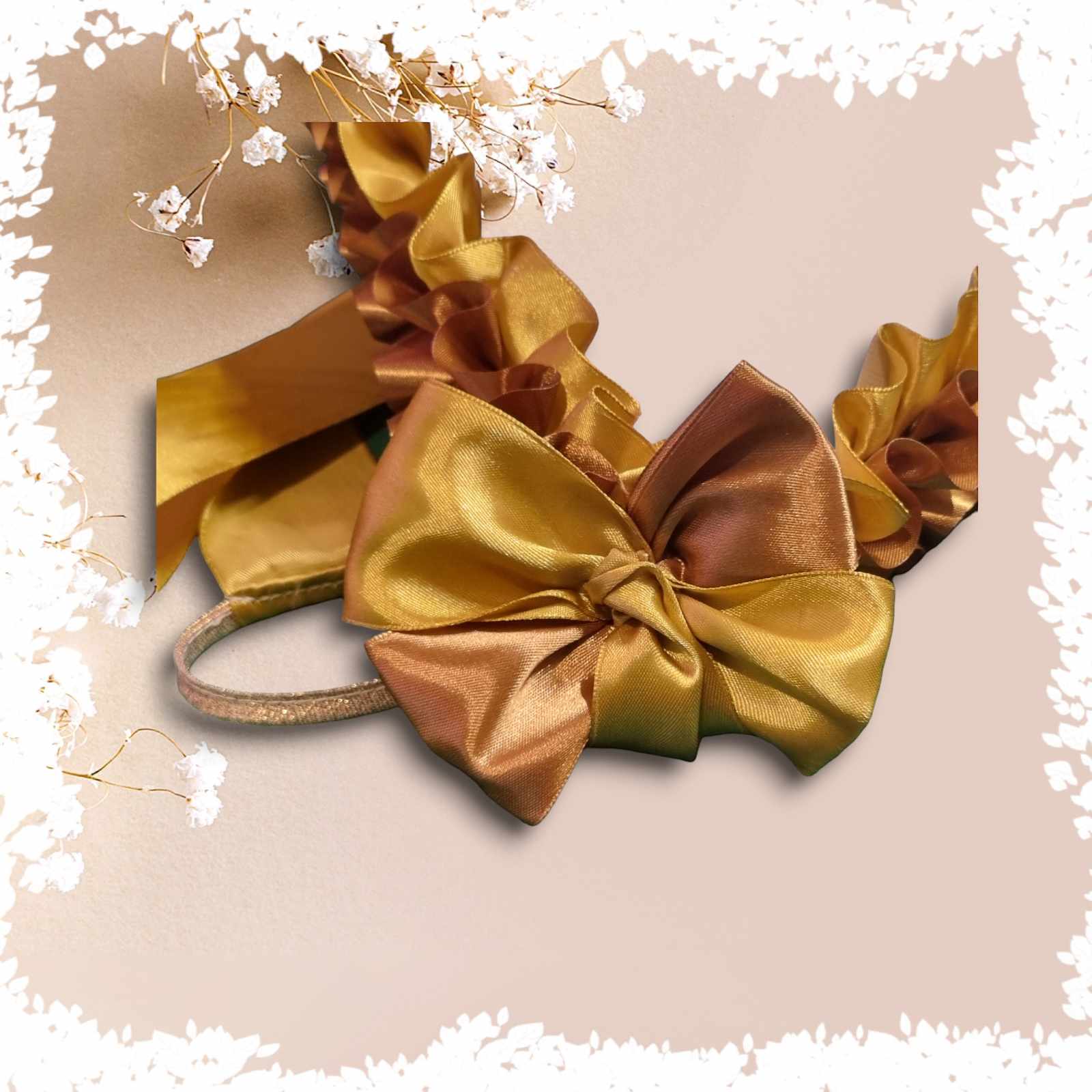 Z tej samej wstążki wykonane są szarfy o długości ok. 3m, zakończone brokatowymi uchwytami.